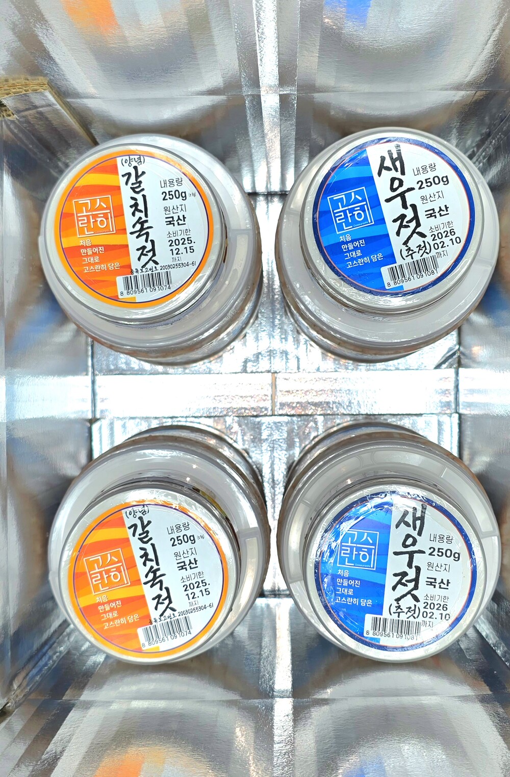 3. 알뜰살뜰 패키지구성 : 새우젓 2kg × 4통 + 양념갈치속젓 250g × 2통 + 새우젓 250g × 2통포인트 : 필수 새우젓 + 별미 젓갈까지, 풍미와 실속을 동시에